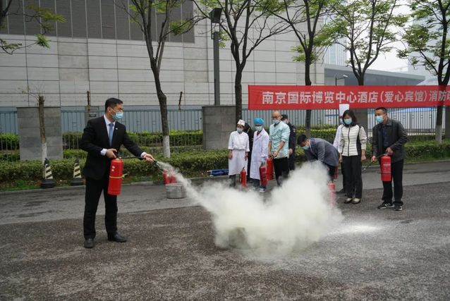 南京國際博覽中心酒店全體員工集體參與了消防演練。此次演練分為安全疏散、醫(yī)療救護(hù)和滅火演練三個部分。