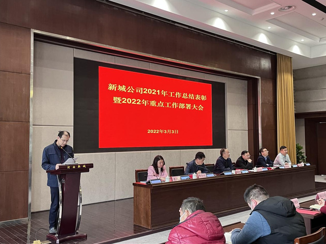 3月3日下午,新城公司召開2021年工作總結(jié)表彰暨2022年重點(diǎn)工作部署大會(huì),河西集團(tuán)黨委副書記、董事繆昌根,新城公司領(lǐng)導(dǎo)班子成員及全體員工參加。